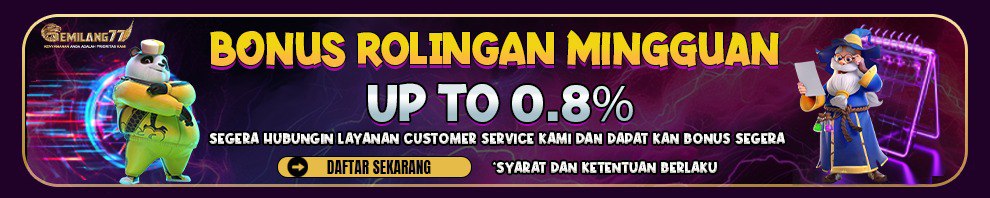 • Promo bonus Rollingan / Rebate Ini berlaku semua permainan • Bonus akan masuk Setiap Minggunya tanpa perlu di Klaim • Tidak ada batasan maksimal dalam bonus, dan boleh langsung diwithdraw tanpa syarat • Pembagian Bonus Rollingan dimulai dari jam 01:00 WIB pagi setiap Minggunya. • Promo Bonus Rollingan ini anda dapatkan dari total bettingan anda setiap minggunya. • Seluruh member GEMILANG77 sudah langsung otomatis mengikuti promo ini.